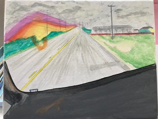 In watercolor pencil, pencil, and marker.