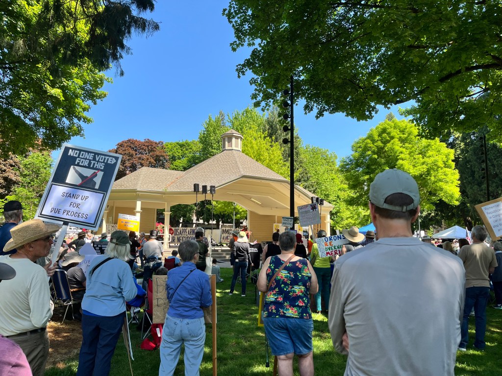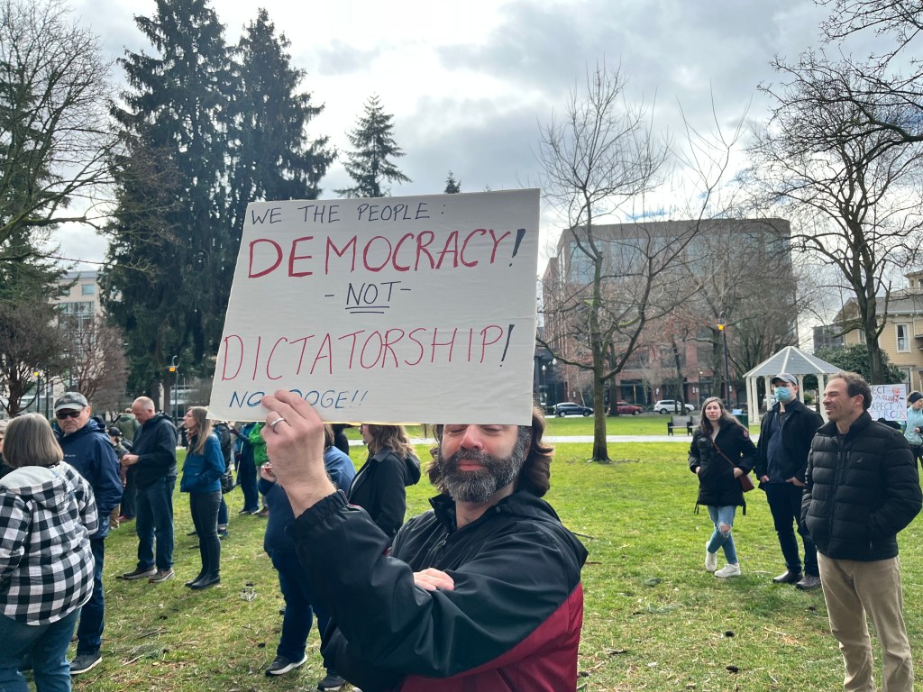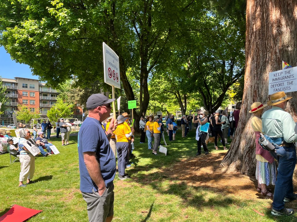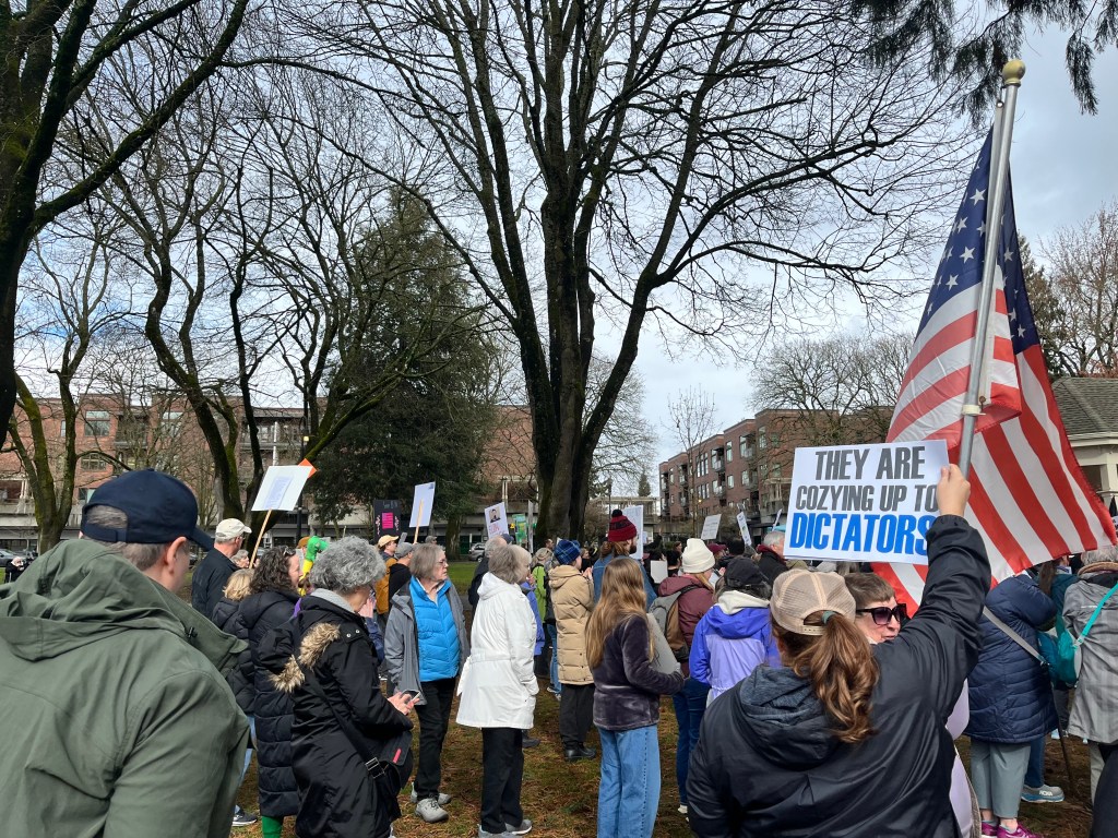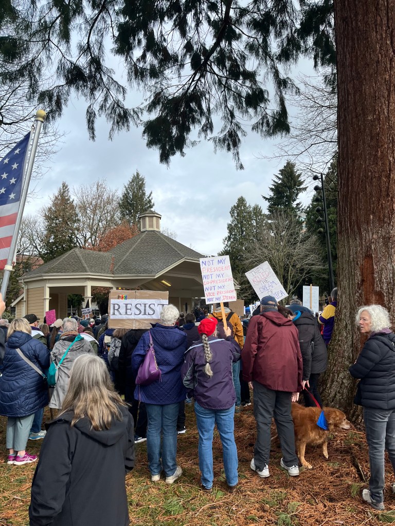 Today, President’s Day in America, we joined the “Not my president’s day” protests across the nation at Esther Short Park here in Vancouver, WA. Like so many of our comrades the first few weeks of Trump’s second term, we had felt a range of emotions, primarily despair. Today we showed up out of solidarity with we the people who demand Democracy over Oligarchy, Dictatorship, and cruelty. This is only the beginning; we plan to do our part in resisting the would-be-king/dictator and his entourage blowing up whatever Democracy is left in this country.