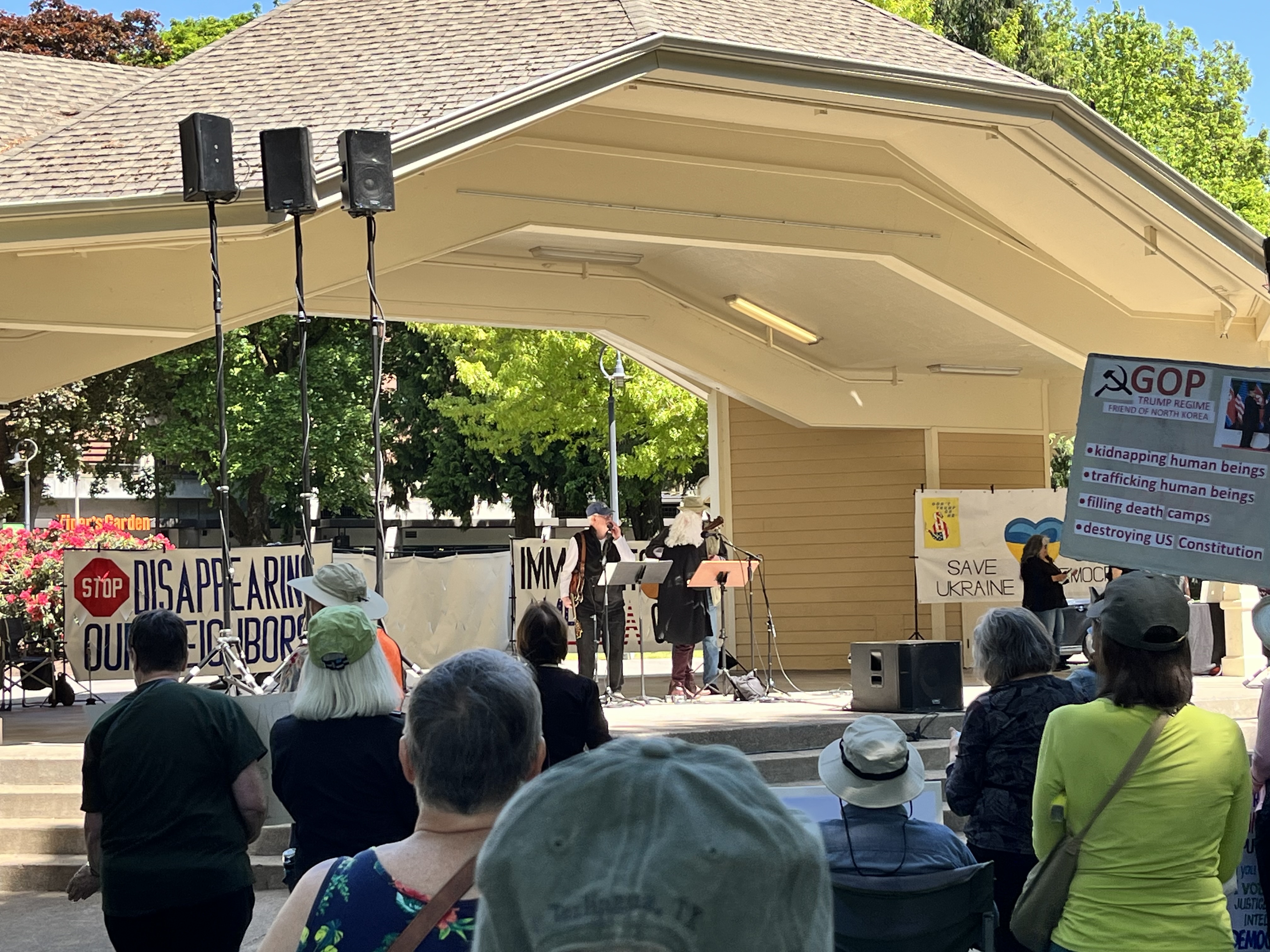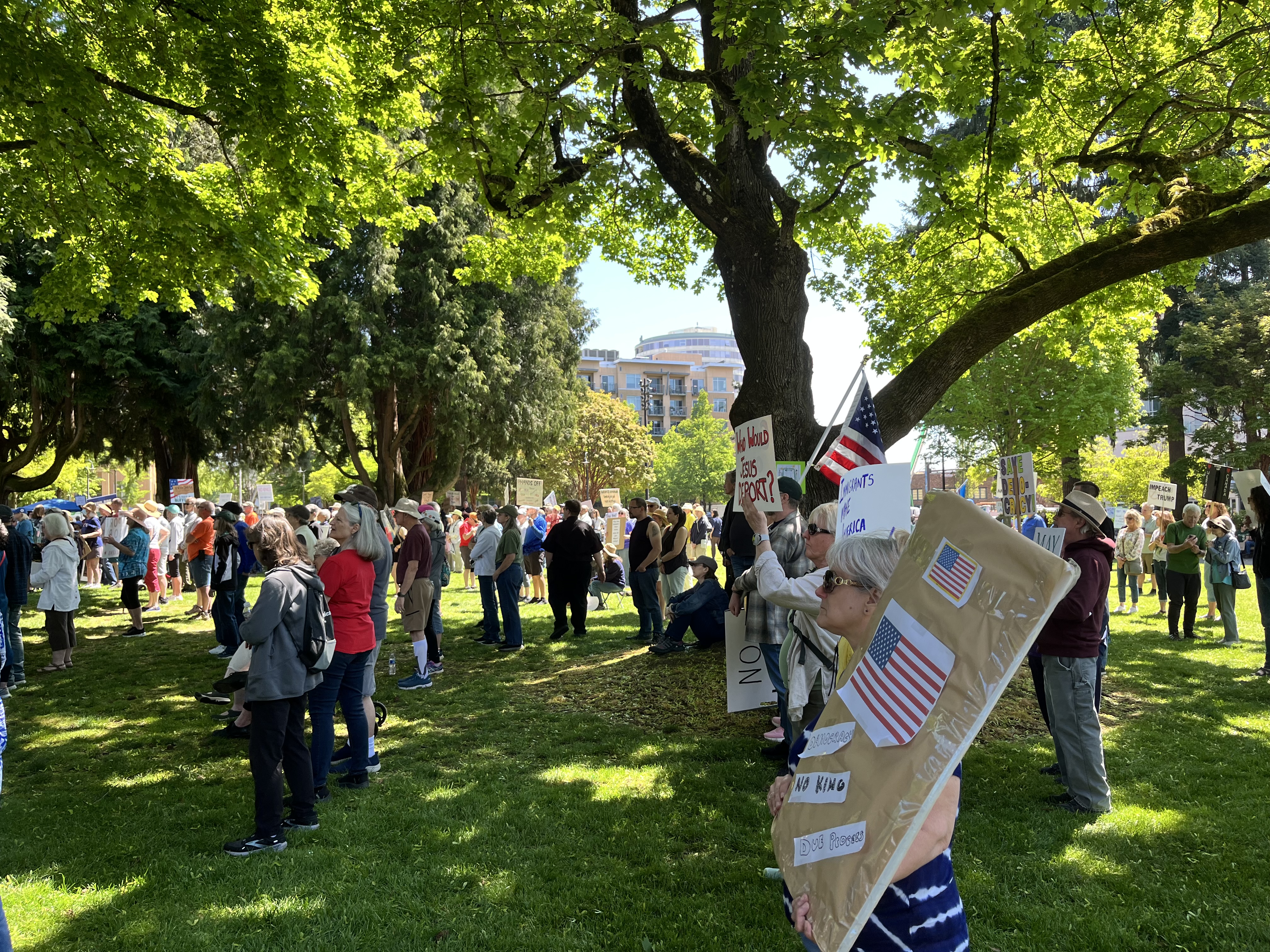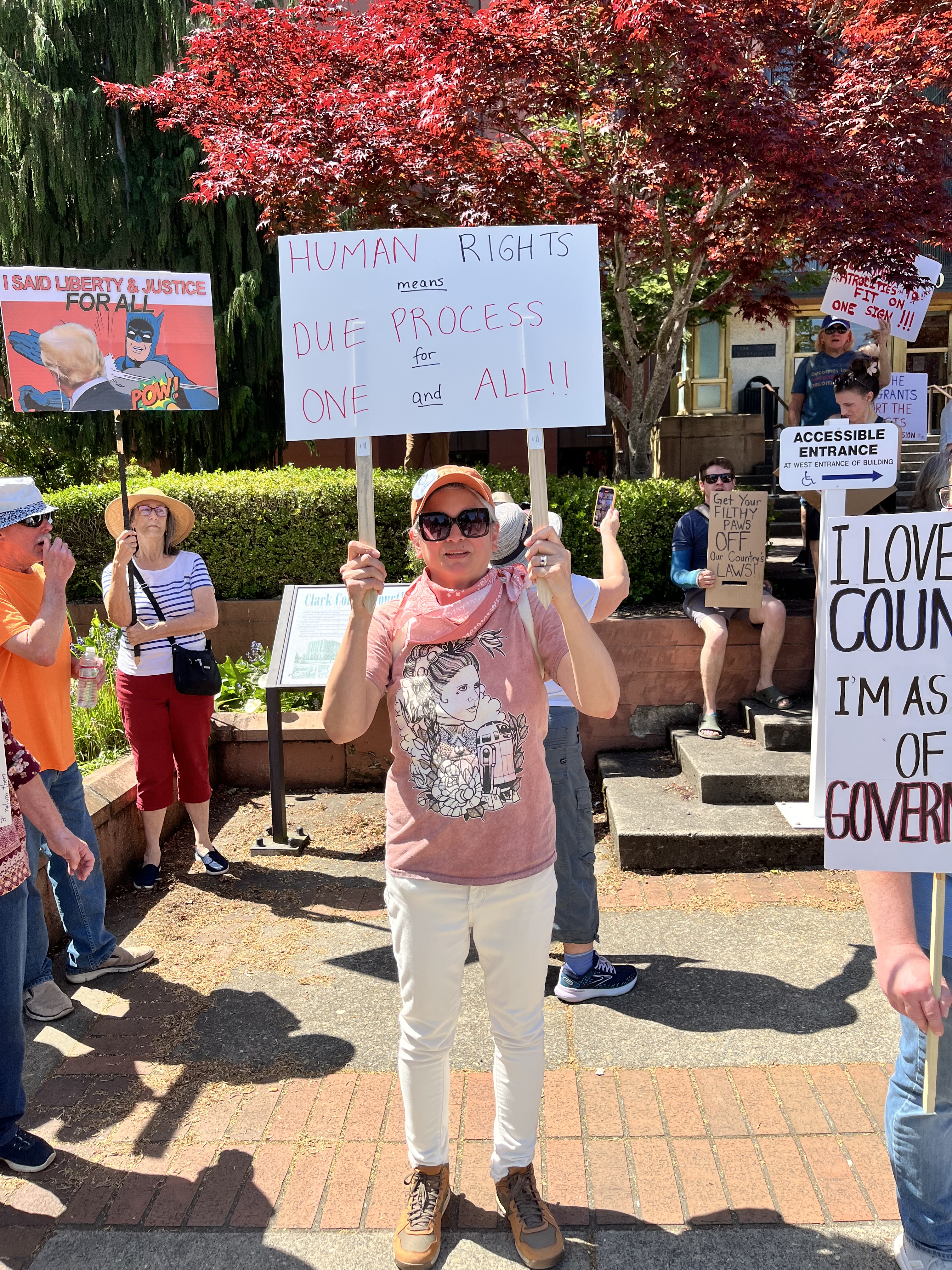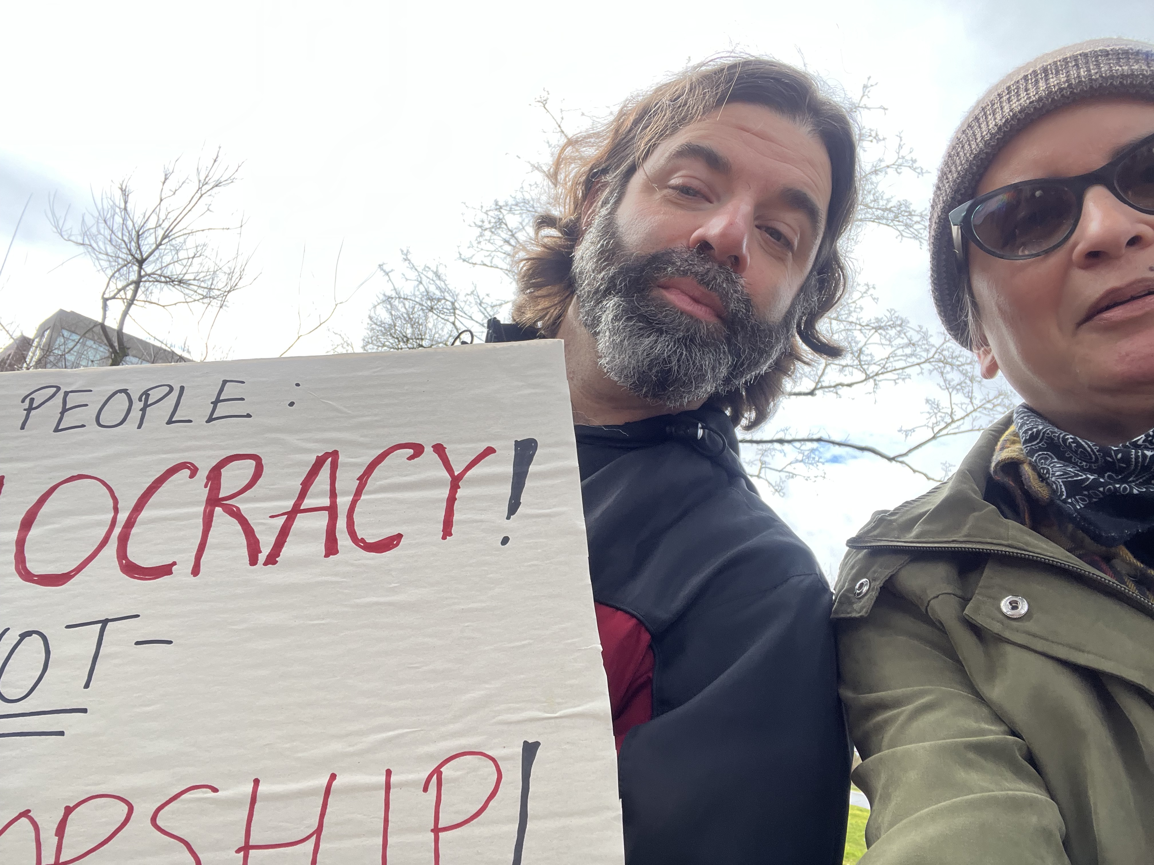 Today, President’s Day in America, we joined the “Not my president’s day” protests across the nation at Esther Short Park here in Vancouver, WA. Like so many of our comrades the first few weeks of Trump’s second term, we had felt a range of emotions, primarily despair. Today we showed up out of solidarity with we the people who demand Democracy over Oligarchy, Dictatorship, and cruelty. This is only the beginning; we plan to do our part in resisting the would-be-king/dictator and his entourage blowing up whatever Democracy is left in this country.